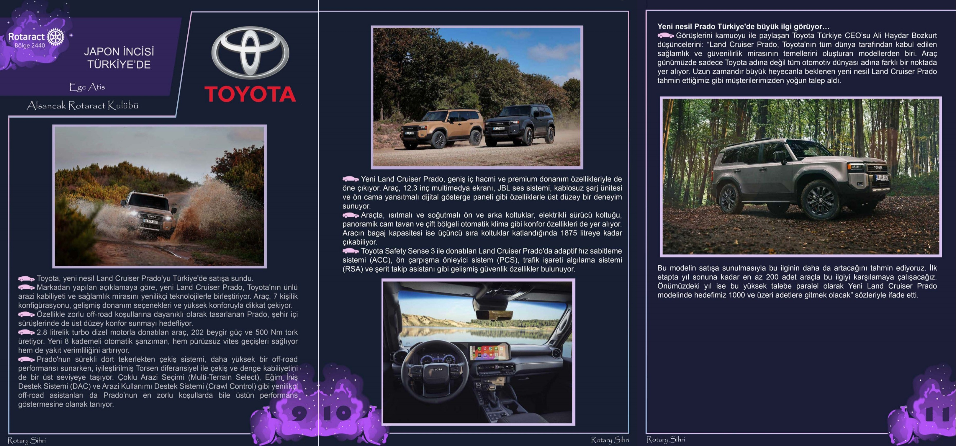 Markadan yapılan açıklamaya göre, yeni Land Cruiser Prado, Toyota’nın ünlü arazi kabiliyeti ve sağlamlık mirasını yenilikçi teknolojilerle birleştiriyor. Araç, 7 kişilik konfigürasyonu, gelişmiş donanım seçenekleri ve yüksek konforuyla dikkat çekiyor.